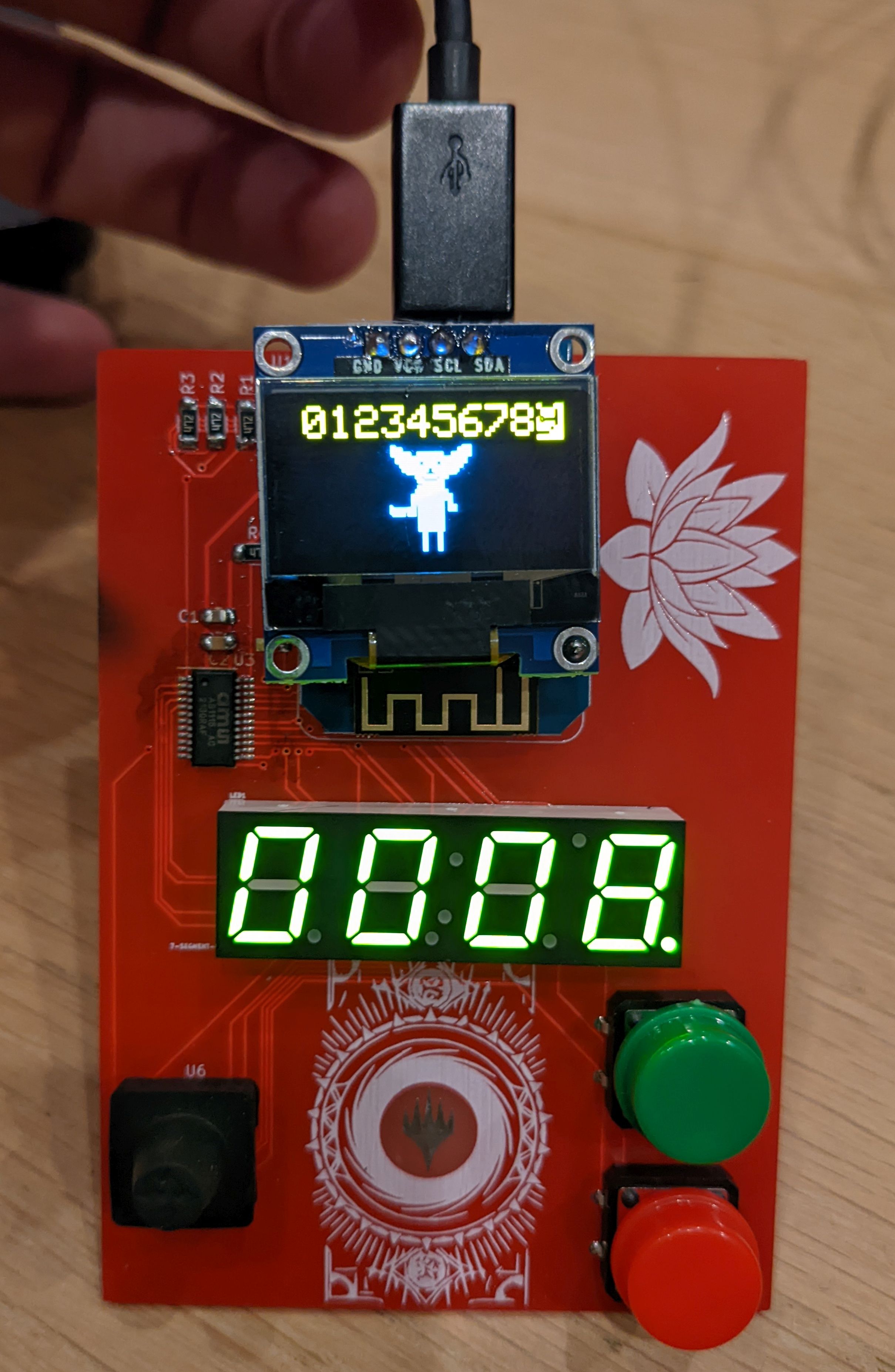 I recently bemoaned that the free apps for tracking life total in Magic the Gathering are pretty bad. Besides the apps themselves being subpar, using your phone for this application is not ideal, between needing to make sure the screen stays on and is readable, while draining battery. At the minimum a life tracker just needs to display a value and be able to increment up and down. I realized this could be a good opportunity to design a custom board.
